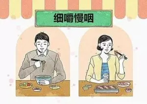 如果不想得胃炎、胃溃疡、胰腺疾患和其他疾病,进食不宜过快。一口饭如果能嚼到30下,最好是50下,一直嚼到没东西可吞咽的程度,就会少得或不得胃肠疾病。瑜珈学说还提出,不仅硬食物,就是软食品,甚至液体食品都得细细咀嚼,这样食物和饮料更有能量,也更有益。